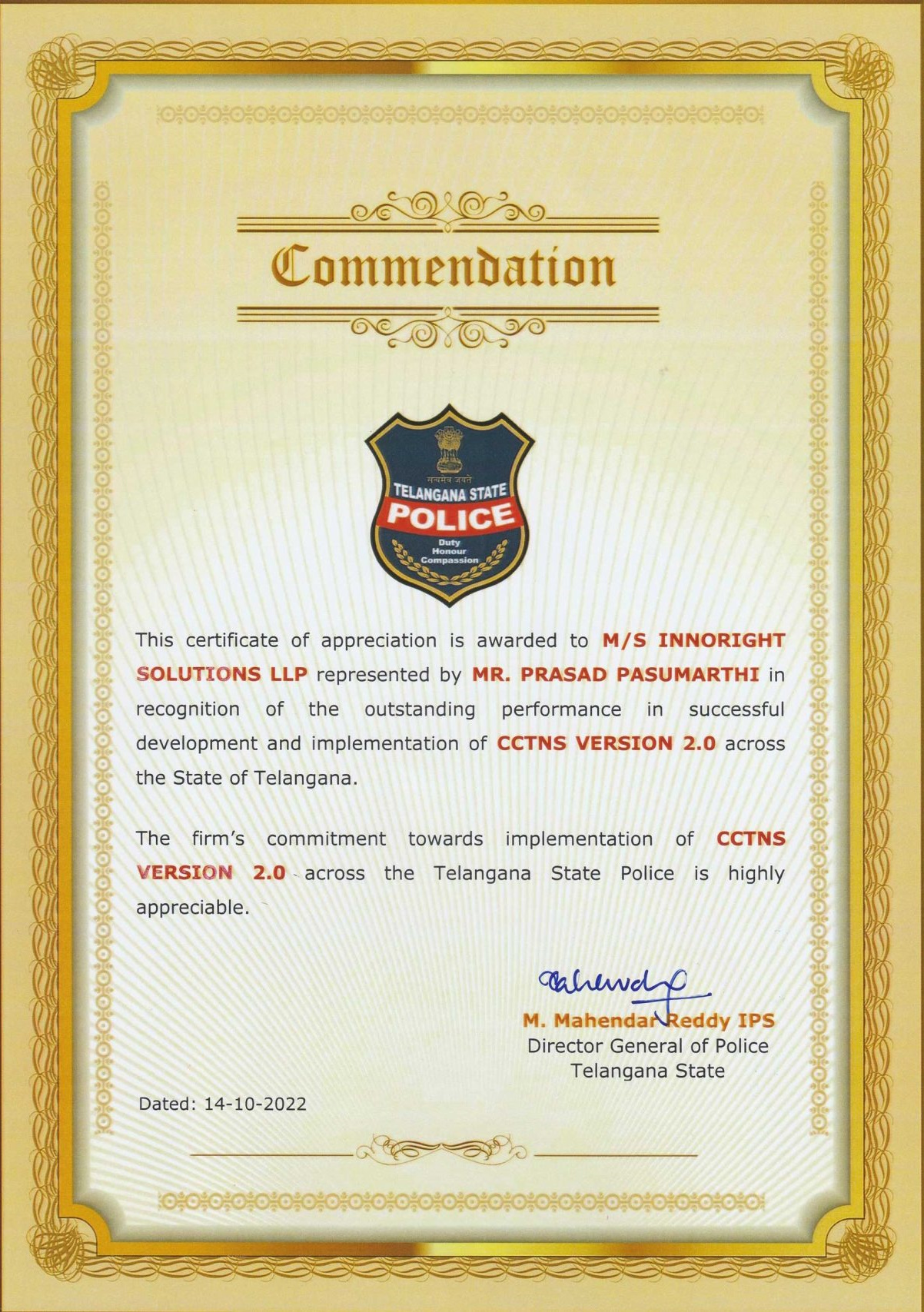 We have successfully re-platformed Crime and Criminal Tracking Network System (CCTNS) for Telangana Police. The Phase 1 rollout across the state in October 2022 is a significant achievement. Currently, a three-year engagement for Phase 2 is underway, encompassing the implementation of additional features and the integration of analytics for predictive analysis. This ongoing effort reflects a commitment to enhancing law enforcement capabilities and leveraging advanced technologies to improve crime tracking and analysis for the benefit of public safety.